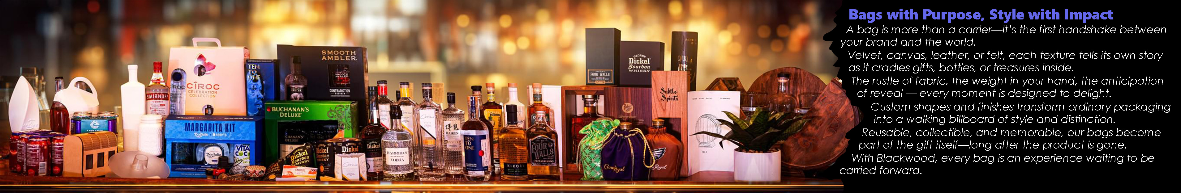 Blackwood’s bags are trusted by clients across a broad range of industries. In the spirits and wine sector, our gift bags elevate bottle presentation and protect products during transport. For cosmetics, jewelry, and luxury accessories, elegant pouches and drawstring bags offer both style and protection. Gourmet food and confectionery brands use our bags for exclusive packaging and gift sets, while retail, fashion, and promotional sectors value our bags for their reusability and strong brand messaging. Whether for high-end presentation, eco-friendly packaging, or practical everyday use, Blackwood’s bags deliver both function and flair to enhance the customer experience.